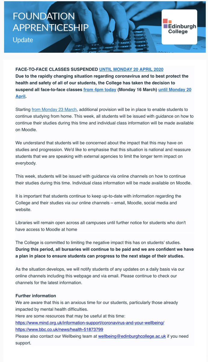 Edinburgh College No Classes But Campuses Are Open Tomorrow